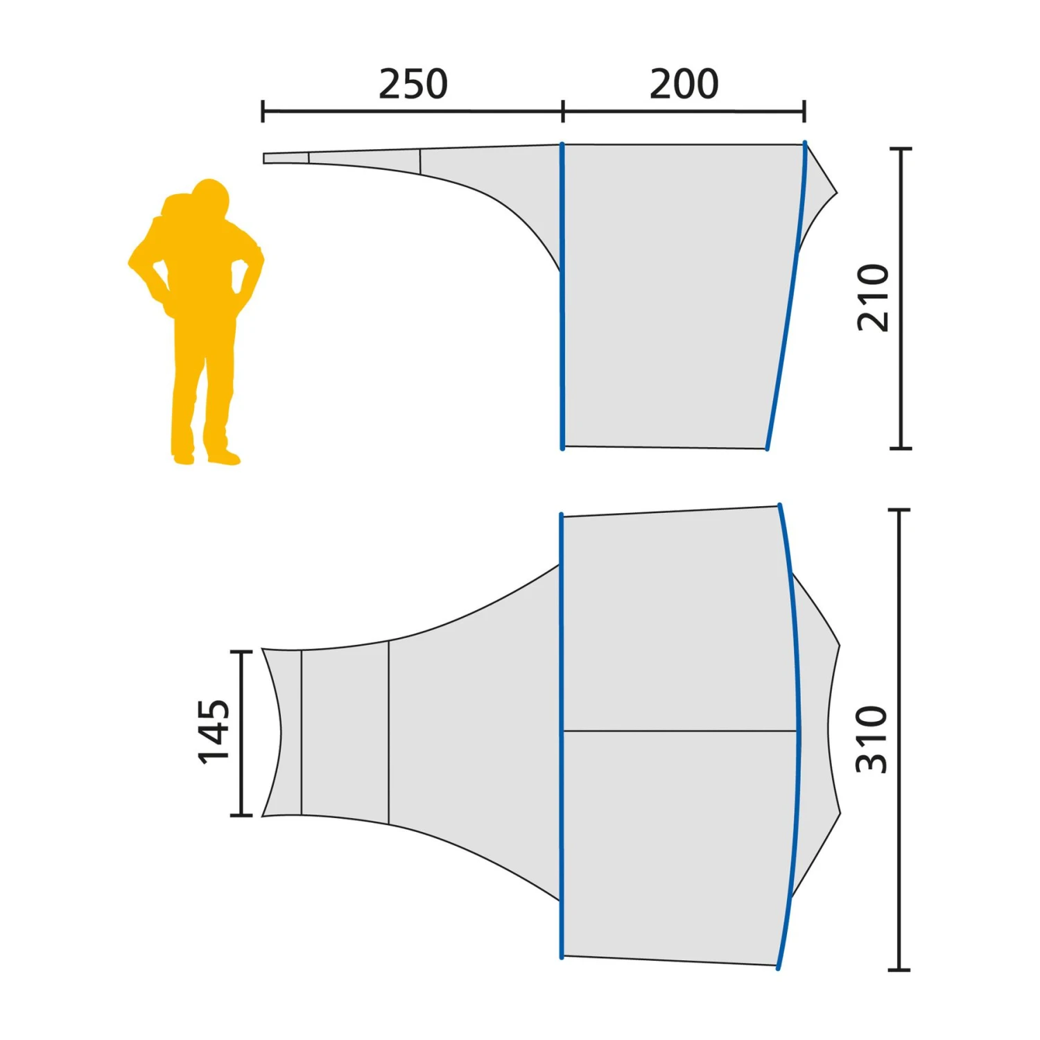 Large awning for family tents family tent awning roll-up sidewalls standing space no PFC Description (detailed): A great add-on accessory for family camping trips, the FRONT PORCH is an easy way to increase the size of your tent’s living space or gear store. This large awning is compatible with all our family tents. It creates an extra vestibule at ground level for your tent and increases the covered living area by seven square meters, enough space for a dining area, kitchen or bike storage. It comes with two long poles and several anchor ropes and is very easy to set up. reinforced anchor points and sealed seams 4 ORGANIZER mesh pockets 10 poles, 6 anchor ropes POLYESTER 75D: lightweight, strong, quick-drying, UV-resistant fabric with PU coating, used for eaves cloth (4000 mm water column) STRONGHOLD STEEL, Q195 : Heavy duty galvanized steel tent poles storage bag with wheels Materials Fly Style 1: 100% polyester Frame: 100% steel Features Gender: Ungendered Measurements: 450 x 310/145 x 210 cm Backpack dimensions: 61 x 17 cm Weight: 6800g