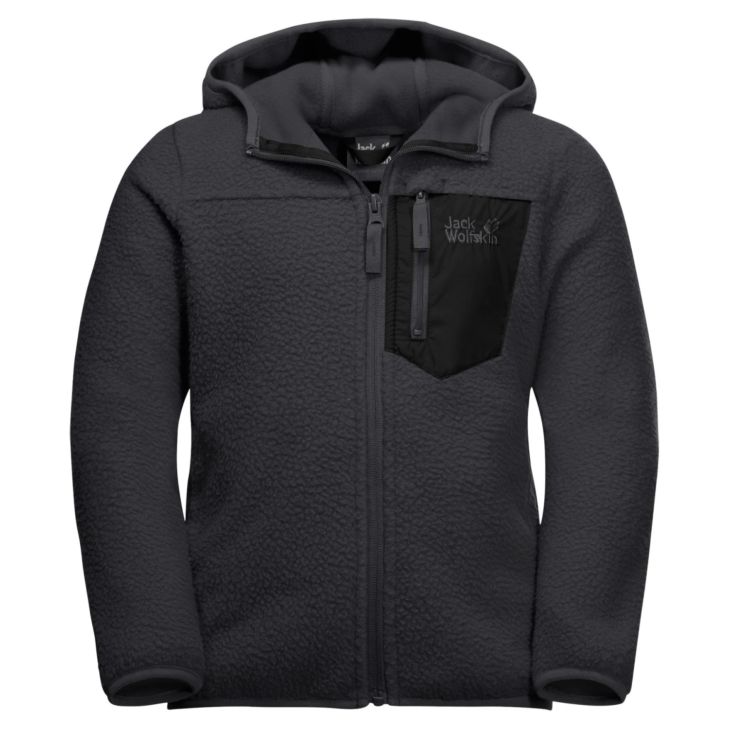 The cozy fleece jacket keeps them warm. Its highlight: the windproof STORMLOCK material trim on the chest pocket and hood. The hood is also perfect for replacing the cap when the wind whistles in the little ones’ ears.