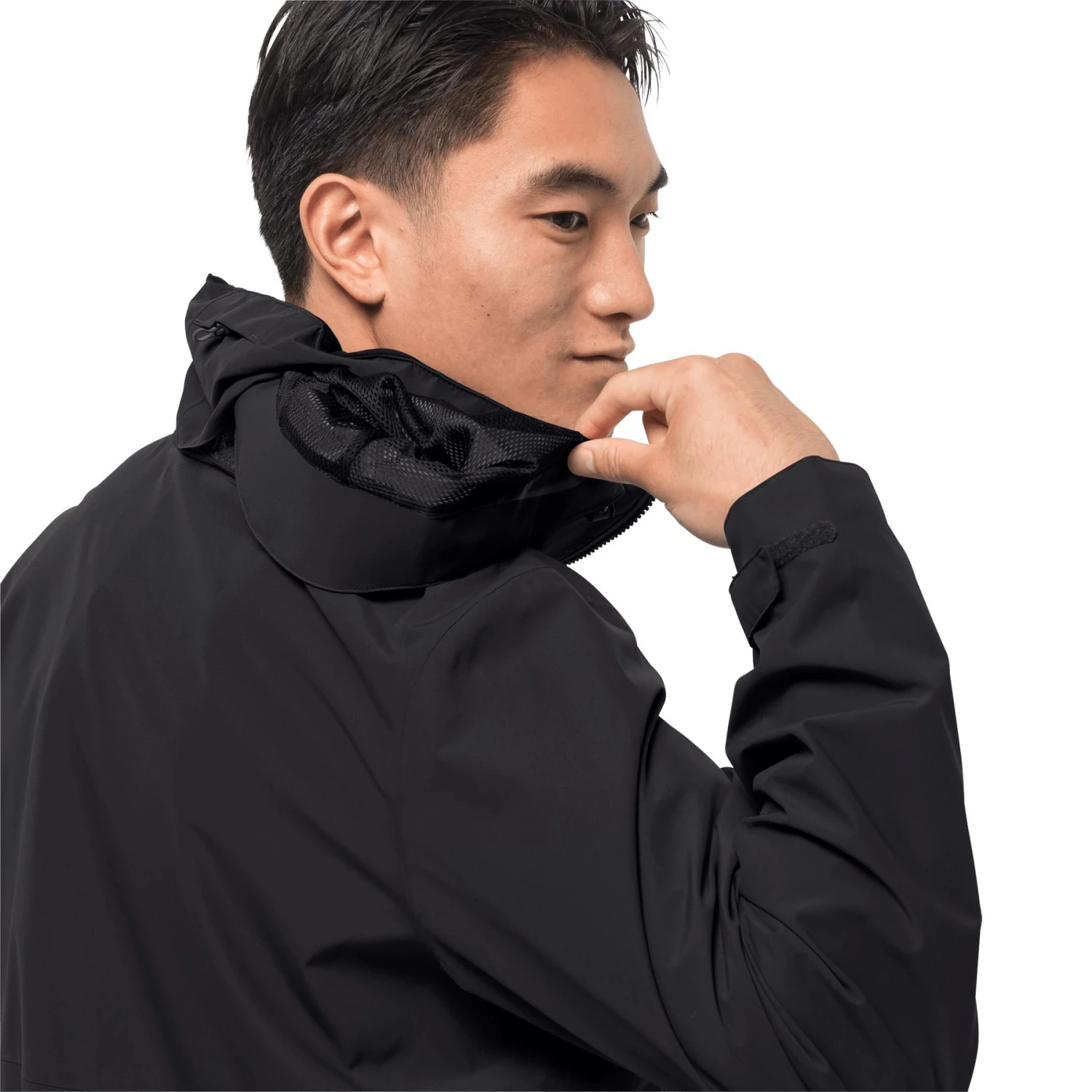 Soft, breathable hiker’s jacket with a foldable hood. It stays flexible even on rough trails: the EVENDALE is one of our classic hardshells. We chose a soft version of the TEXAPORE material that promotes movement. It keeps you dry even in persistent rain and is so breathable that it keeps you performing all day. The equipment is simple and functional – for example, the hood: you can stow it in the collar when it’s not raining. TEXAPORE 2L: waterproof, windproof and breathable outer material (water column: 10,000 mm*, water vapor permeability: 6,000 g/m²/24 h**) (according to: * JIS L 1092; ** JIS L 1099 B-1) FUTURE DYE MESH LINING: ecologically dyed mesh lining fixed hood with adjustable face opening and volume, can be stowed away in the collar 2 hip pockets, inside pocket waterproof zips adjustable hem waterproof, windproof, breathable, lightweight PFC-free jacket with bluesign® certification and “Grüner Knopf” label. M 77 Our model is 183 cm tall and wears size M. Active Hardshell Jacket Hiking Men’s PFC-Free Hoodie ZIP AND VELCRO FASTENER WASH INSIDE OUT WITH SIMILAR COLORS SOFTENERS NOT RECOMMENDED FOR IDEAL FUNCTION, WE RECOMMEND A HEAT TREATMENT DO NOT IRON THE PRINT