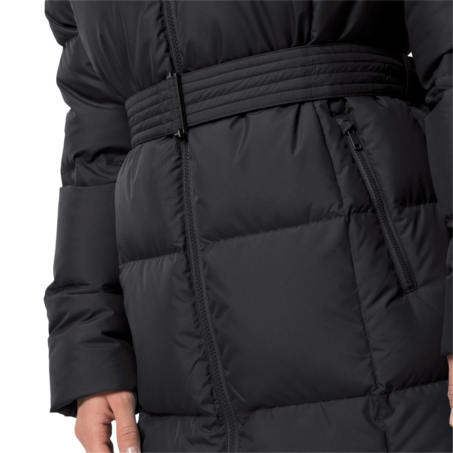 The outer material is windproof and waterproof. So you feel comfortably warm, even in unpleasant weather. And if it starts snowing heavily met, just put on the hood. Thanks to the high collar, your head and neck are perfectly protected. The integrated, individually adjustable waistband guarantees a stylish and feminine silhouette.